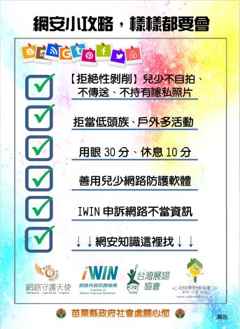 說明:一、依衛福部108年5月13日衛部護字第1081460539號函辦理。二、有鑑於暑假到來,為營造本縣兒少友善活動環境,降低兒少涉入不良場所、提升自我保護能力。故透過各鄉鎮公所、圖書館等公共場所進行相關宣導,宣導重點為「拒絕兒少性剝削」、「網路安全使用」、「拒絕毒品」、「玩具槍支使用規範」,以確實向民眾及兒少傳達正確觀念。